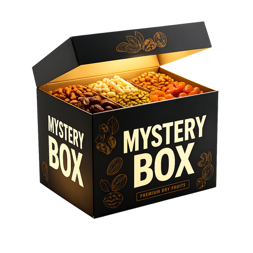 Each box contains a surprise mix of dry fruits. The exact items may vary, but quality is always guaranteed.